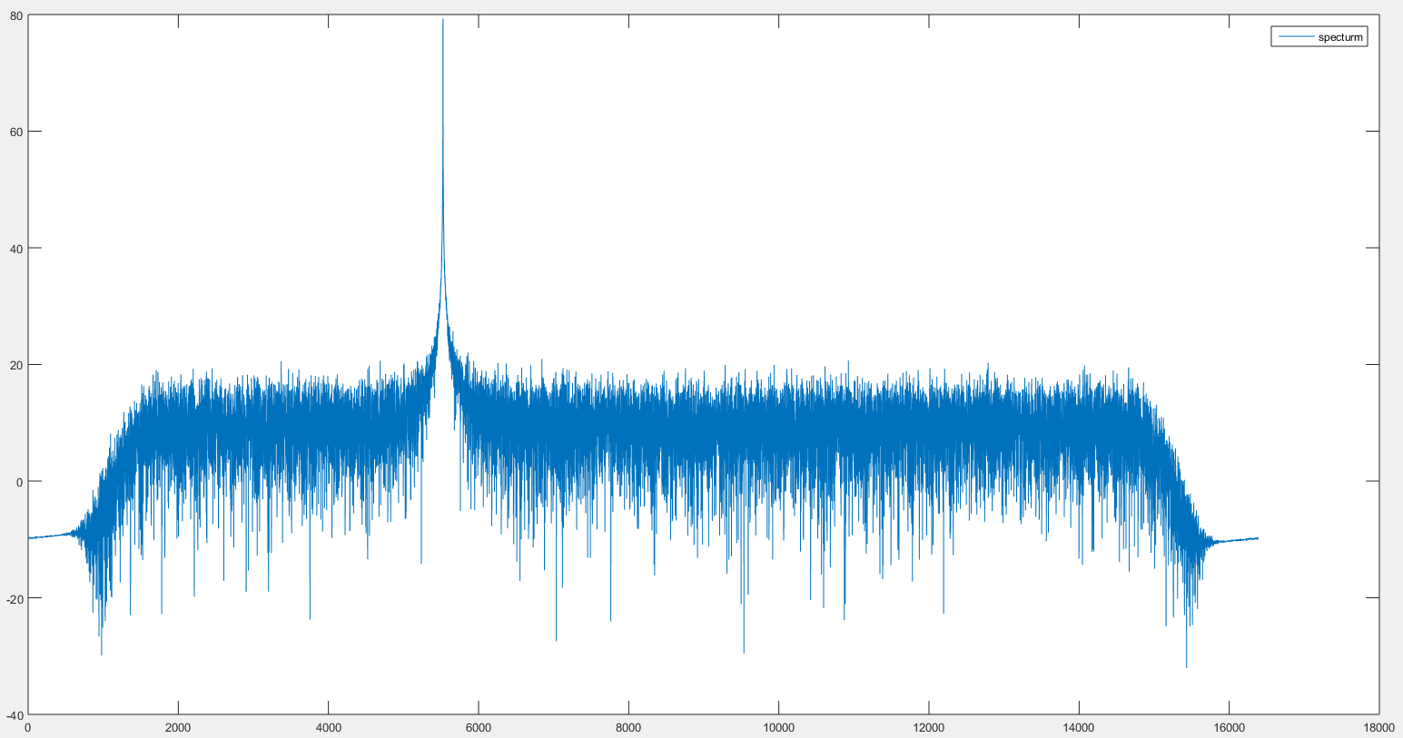 IQ 데이터를 FFT를 이용하여 주파수 영역으로 표시하면 다음과 같다.