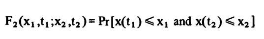 >> 시각 t1일때 랜덤프로세스 x와 시각 t2일때 랜덤프로세스 y에 대한 확률분포를 second order probability로 표현한다.