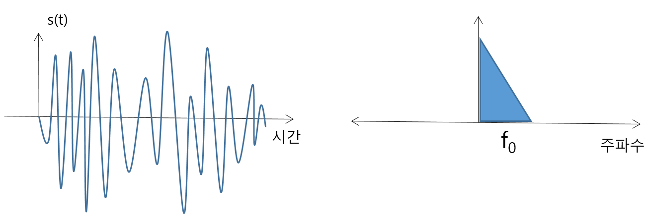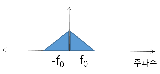 cosωt가 + 주파수의 복소신호와 –주파수의 복소 신호의 합으로 표현된 것 과 같이 신호 s(t) 또한 +f0주파수와 –f0주파수에 나뉘어서 표현된다.