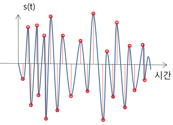 아날로그 신호 s(t)를 fs 주파수로 샘플링한다.